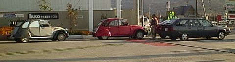こうして、約10台でコンヴォイを組んで東進したのですが、ここで驚くのが支配人&米谷号の2CVの速さ!中央道の急勾配区間でもへっちゃらで走るどころか、下りになるとやおら追い越し車線に飛び出し、アッという間に見えなくなってしまうほどでした。