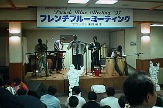 フランス人のパトリック某氏(正確な名前知ってる人教えてください)のヴォーカル+アコーディオンをフィーチャーしてのバンド演奏。シャンソンでもなく、ジャズでもなく、アフリクでもなくの不思議な音楽であったが、ノリノリであったのは確か。 手前にムッシュウ・ビバンダムが2人いるが、別に盆踊りをしているわけではない。 |