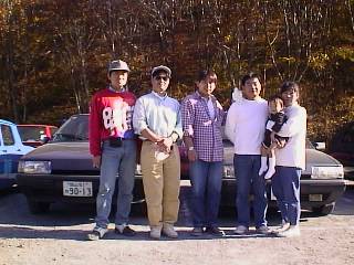 CCCKの面々の車。手前からおかの号ZX、えびちゅ号BX-break、工場長号BX19TRI。その向こうは大人気だったR8 Gordini。 |