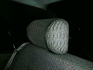 これが装着したところ。ちょっと座ってみたところ、前席に比べていい加減な姿勢で座ることの多い後席用としては枕が前過ぎるような気もします。今度の彼岸で墓参りドライヴするので、その時に具合を調べてみます。(下記補遺参照) |