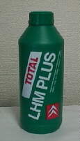 右の写真はLHMの1リッター入りボトルです。LHMに求められている性能は、長期間にわたり変質しにくいこと、圧力を伝えるものであるため、気泡を生じないこと等が挙げられます。大体、ブレーキ・フルードと同じですね。