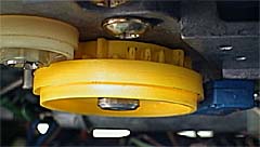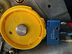 そして、青色に見えるのはマイクロ・スウィッチなのですが、このスウィッチの凸が黄色の周に接していて常時ONになっており、切り欠きのところでOFFになるという仕掛けです。